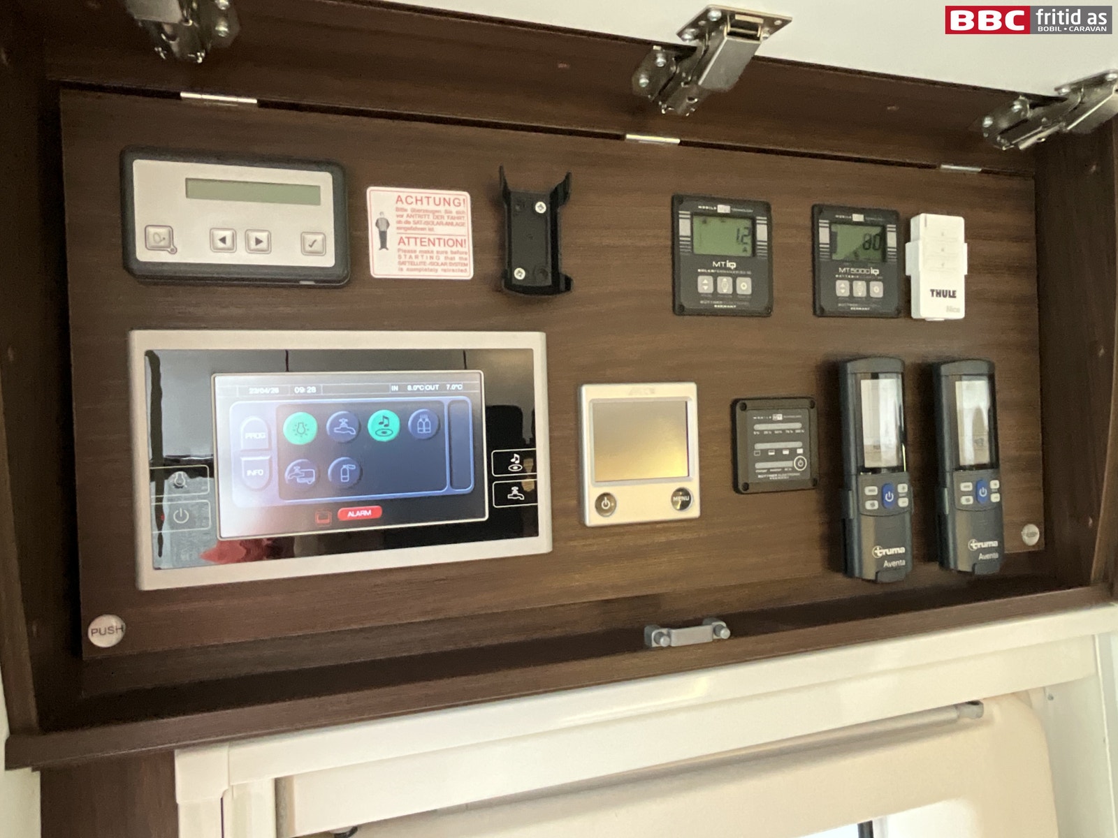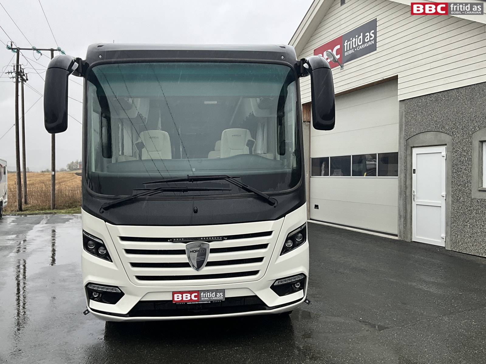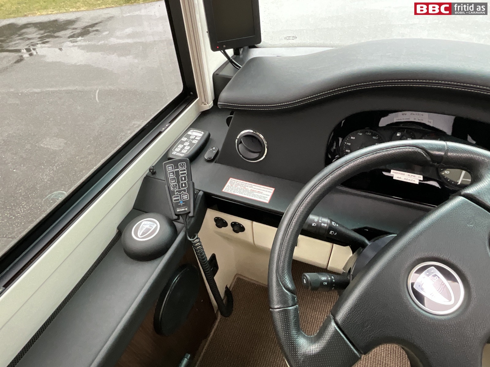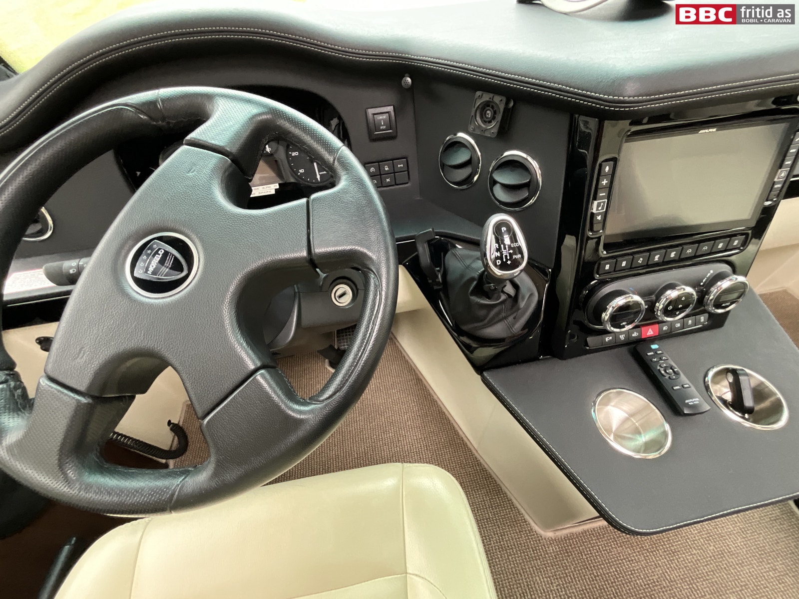 Fremme i bilen har du 2 flotte vendbare fremseter som er fantastisk å sitte i. Med Morelo sin store frontrute har du en enestående utsikt fremover. Det er et Alpina multimedia-anlegg med DAB+, Bluetooth og handsfree. Navigasjon og ryggekamera det også i samme enhet. Elektrisk gardin i frontruten + manuelle nedrekk på siderutene. Rattet kan taes av når du har parkert for dagen.