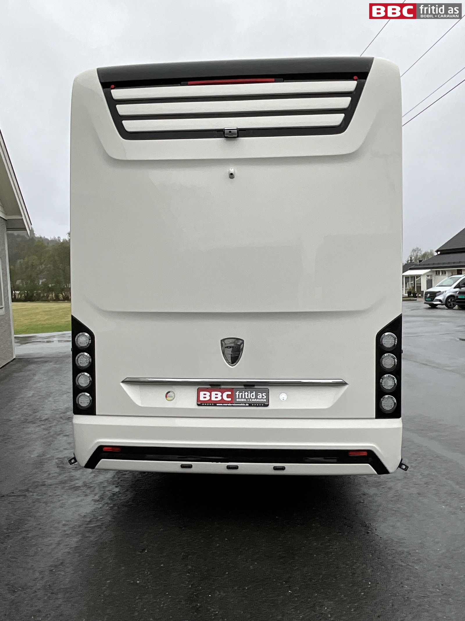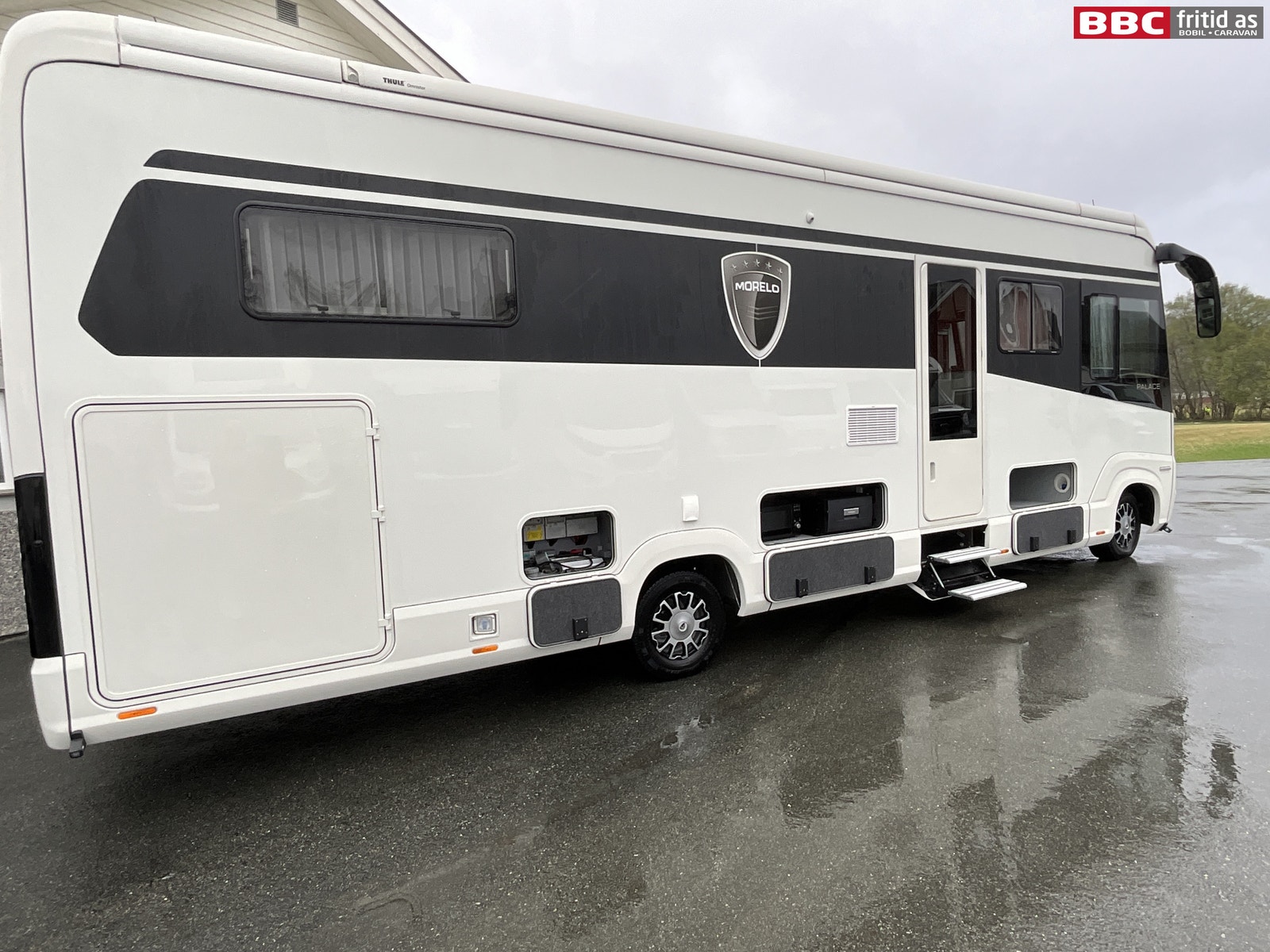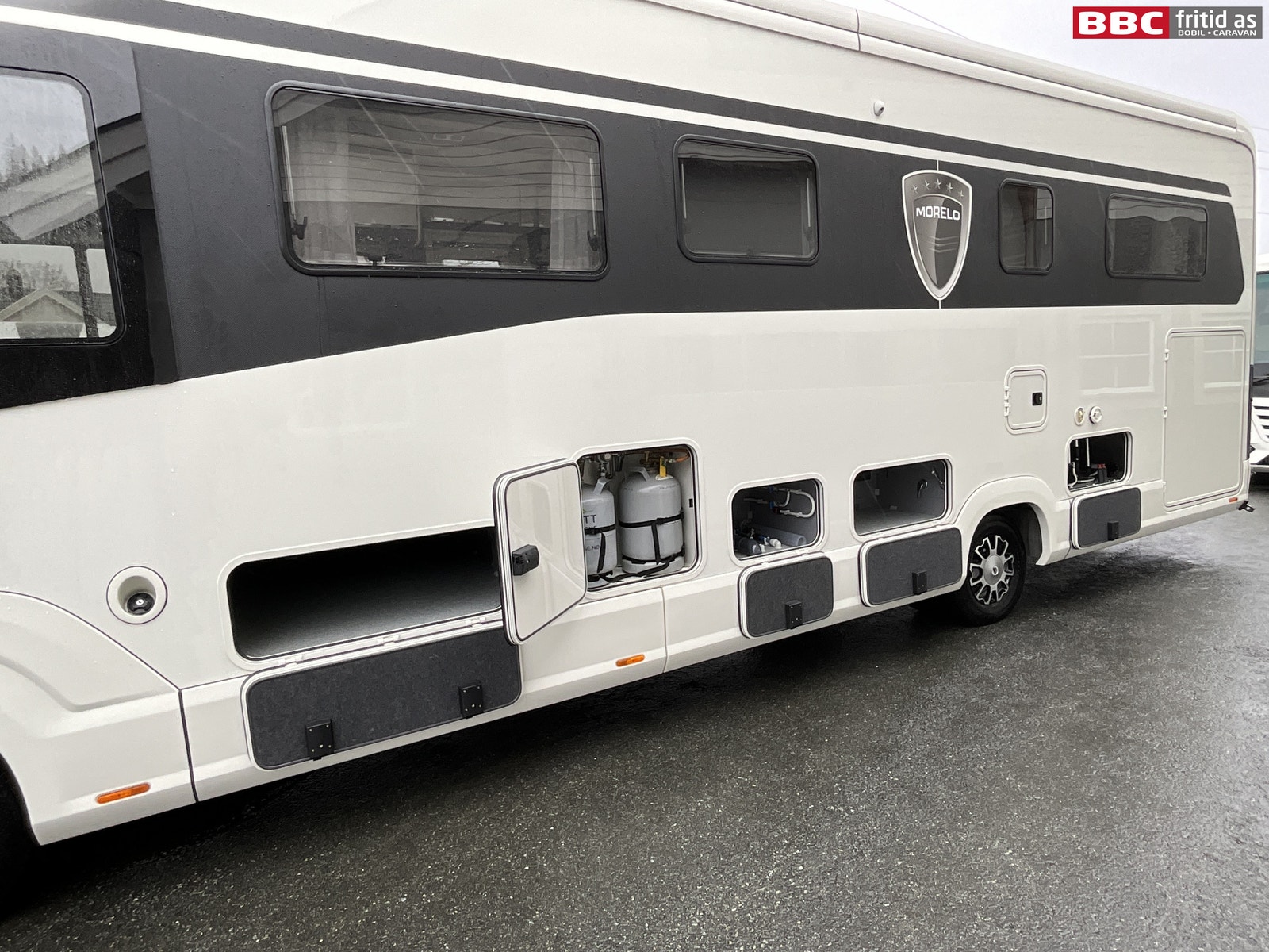 Bilen har en 6 meter Thule elektrisk markise, stort lasterom bak i bilen, og flere mindre lasterom på høyre og venstre side. I det ene lasterommet ved bodelsdøren er det plassert en egen kjøleskuff og microbølgeovn. På taket er det 2 stk solcellepanel, 2 stk aircondition og en helautomatisk parabolantenne. Fremme i fronten er det montert en kraftig LED-bar som gir veldig godt lys. Utedusj er det også inne i den ene lasteluken. Under bilen er det E&P hydrauliske støttebein. Disse kan styres både fra et styringspanel og fjernkontroll. Elektrisk stigtrinn under bodelsdøren.