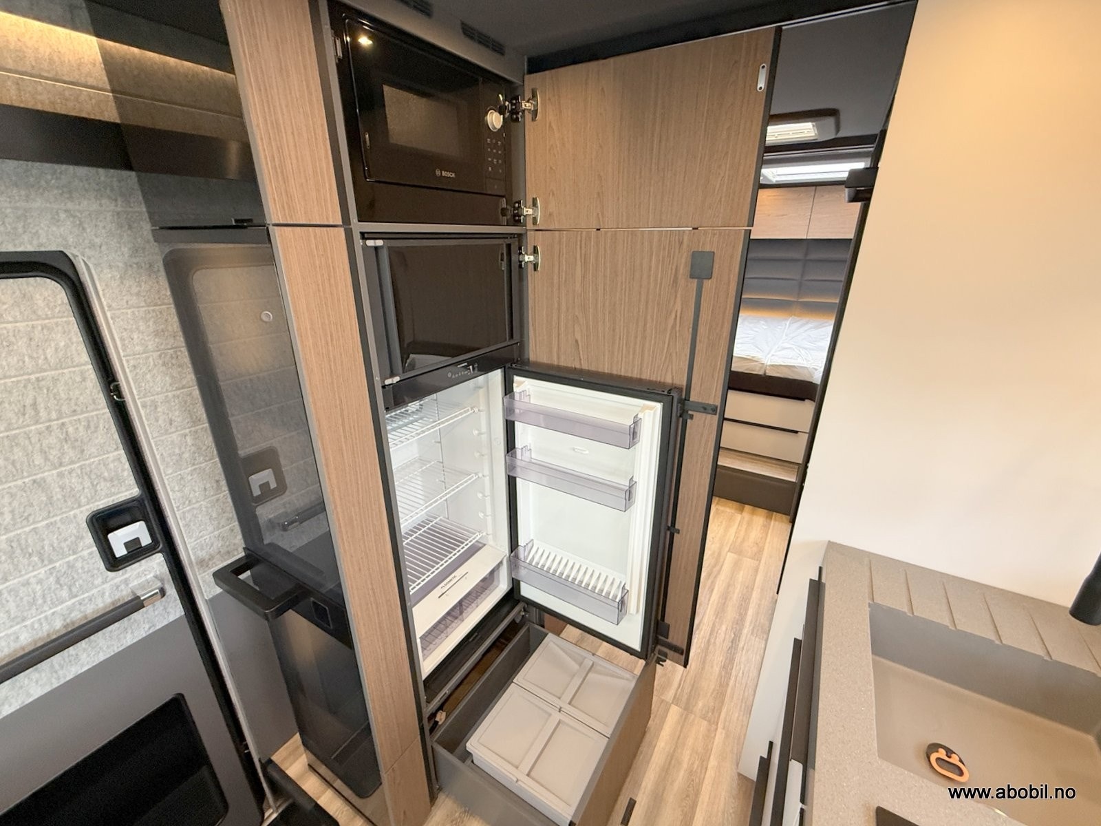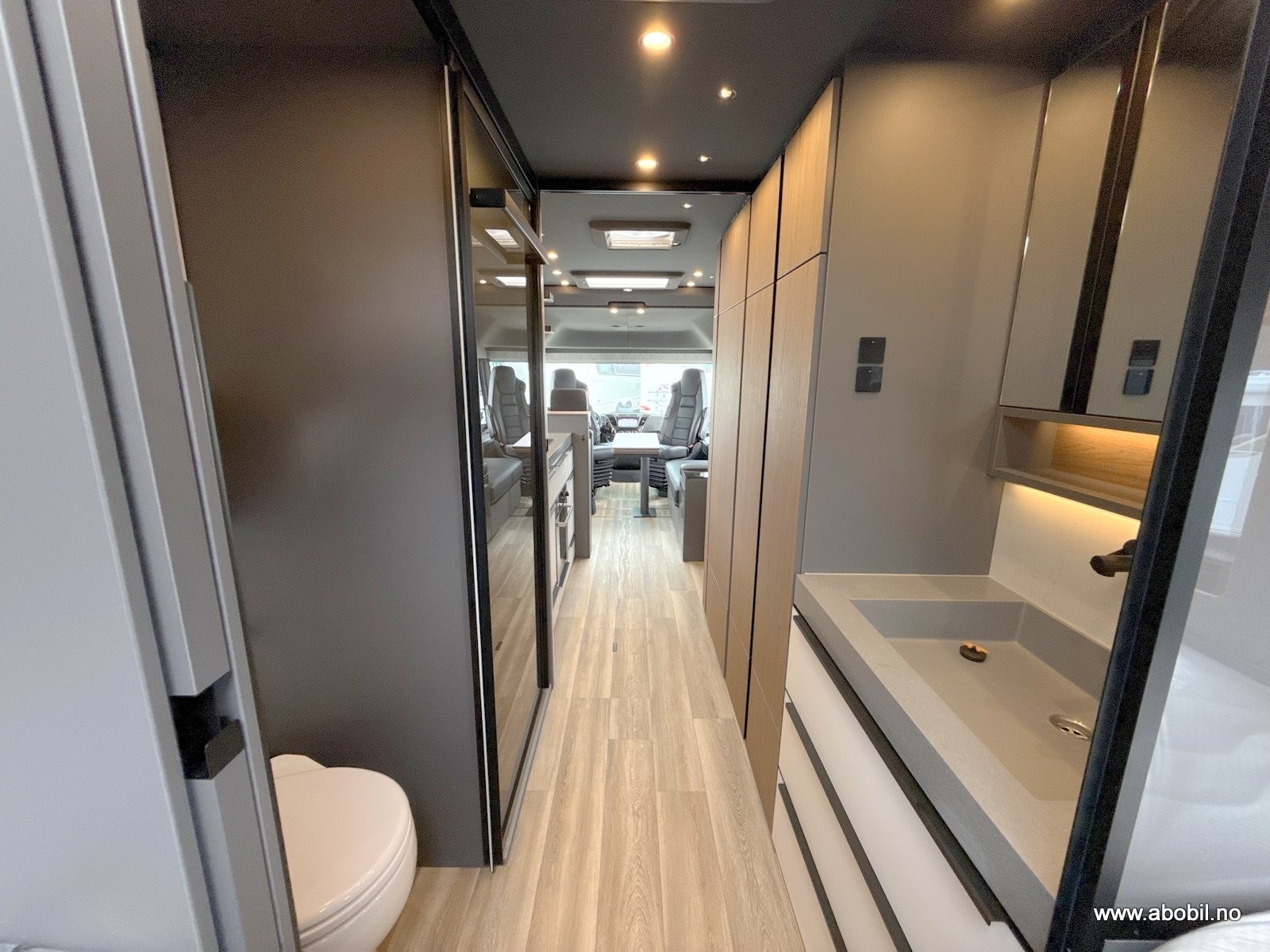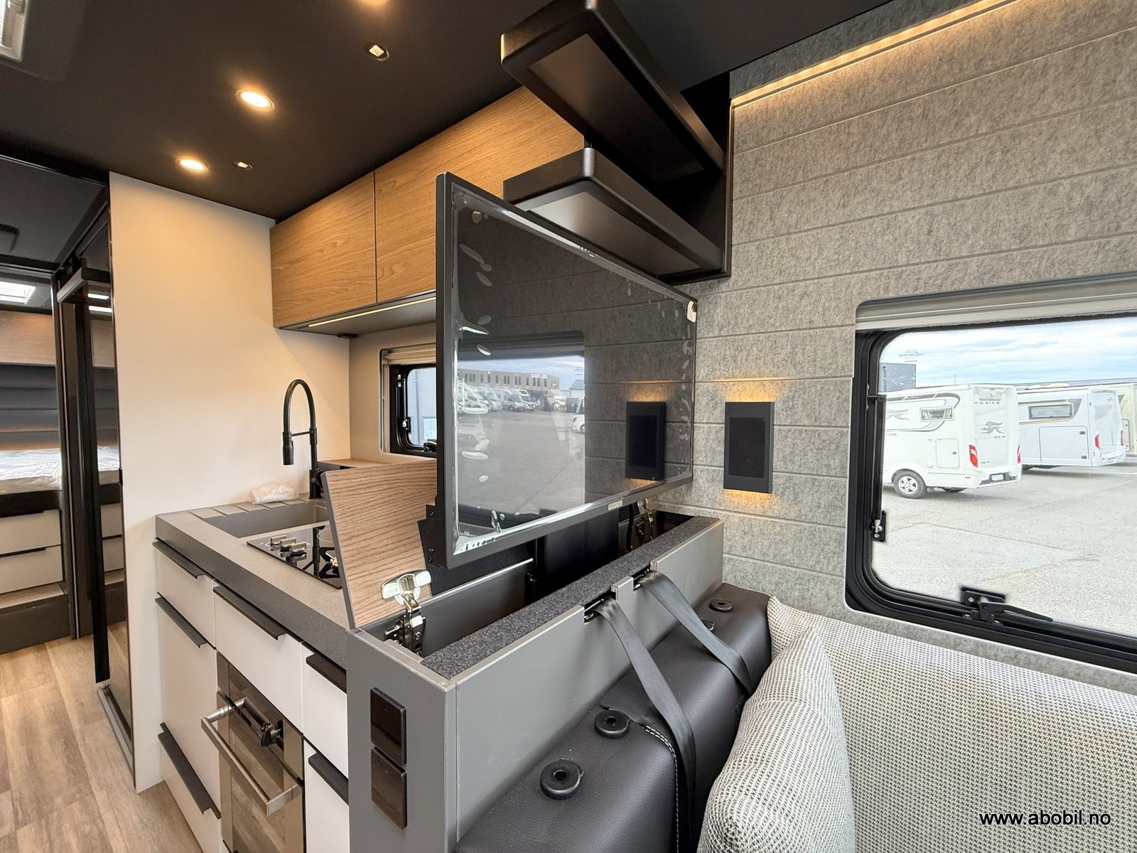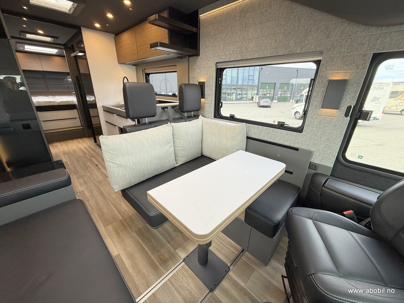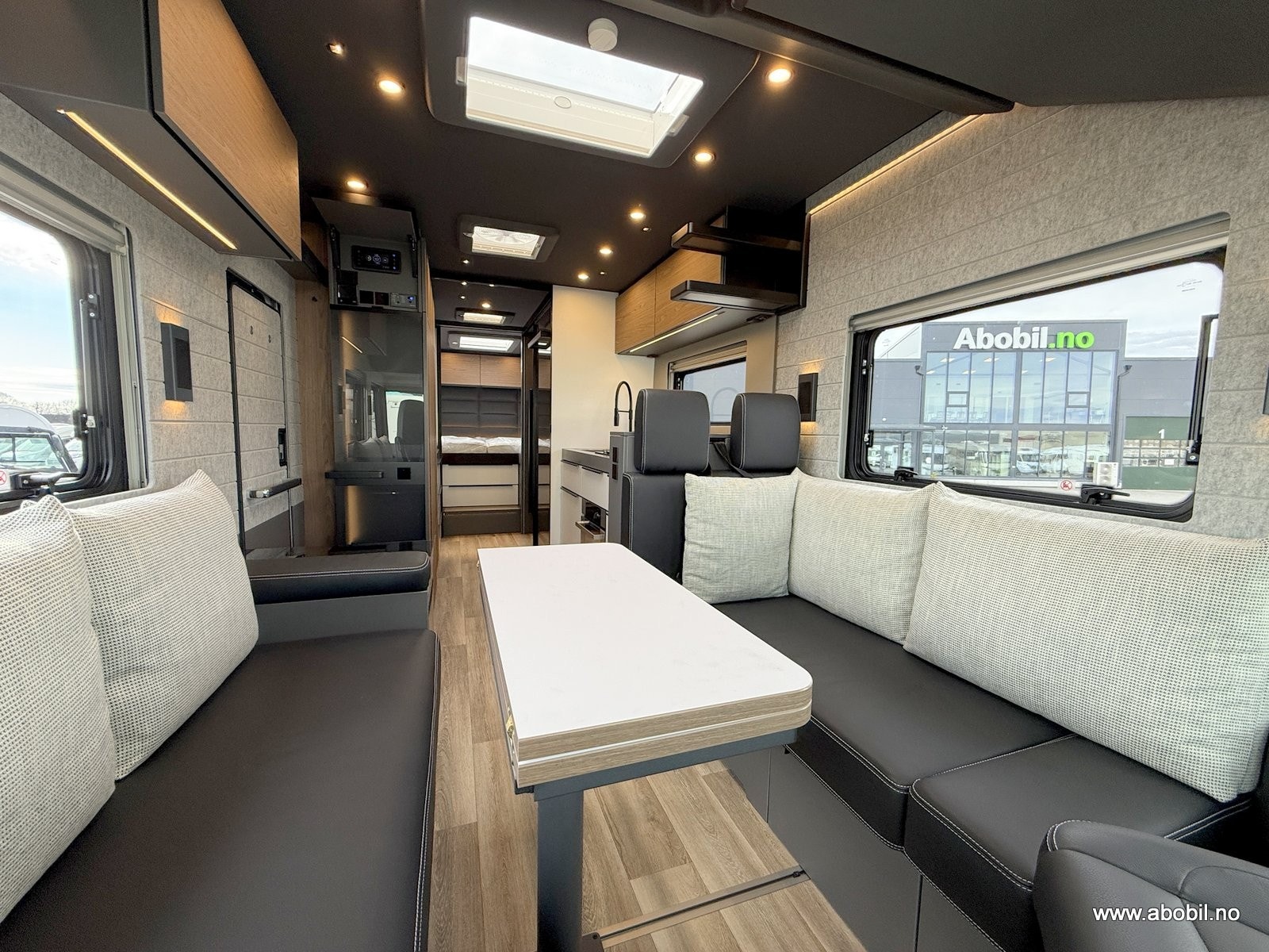 Innvendig møtes du av et gjennomført premiuminteriør med akustisk filtmateriale på vegger for bedre lydnivå. Oppgradert ambient lighting (stemningslys) som gir en lun og hjemmekoselig stemning. Bobilen har flere praktiske løsninger for oppbevaring. ALDE vannbåren varme og gulvvarme – også i førerhuset – gir en behagelig temperatur året rundt. Kjøkkenet er utstyrt med solide mineralplater og byr på fasiliteter som oppvaskmaskin, mikrobølgeovn, stekeovn med grillfunksjon, kaffekapsel maskin og to kjøleskap, noe som gjør langturer like komfortable som hjemme. Badet har romslig dusj og fast keramisk toalett med stor tank. Her får du flere gjennomtenkte løsninger for maksimal komfort.