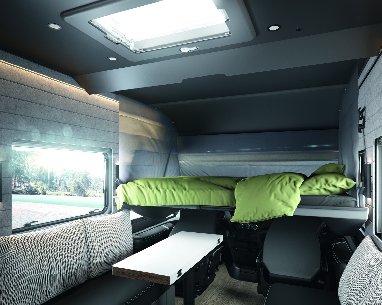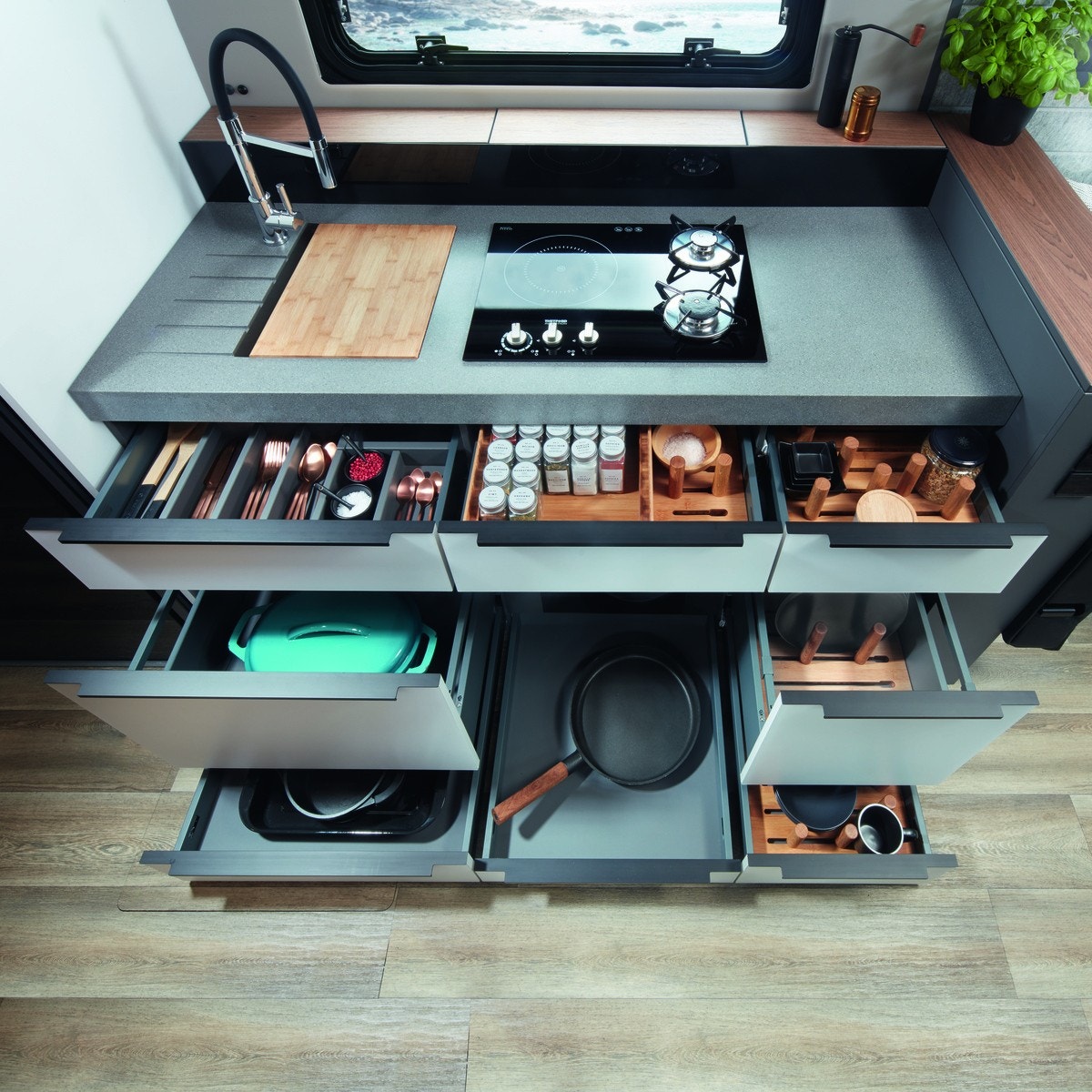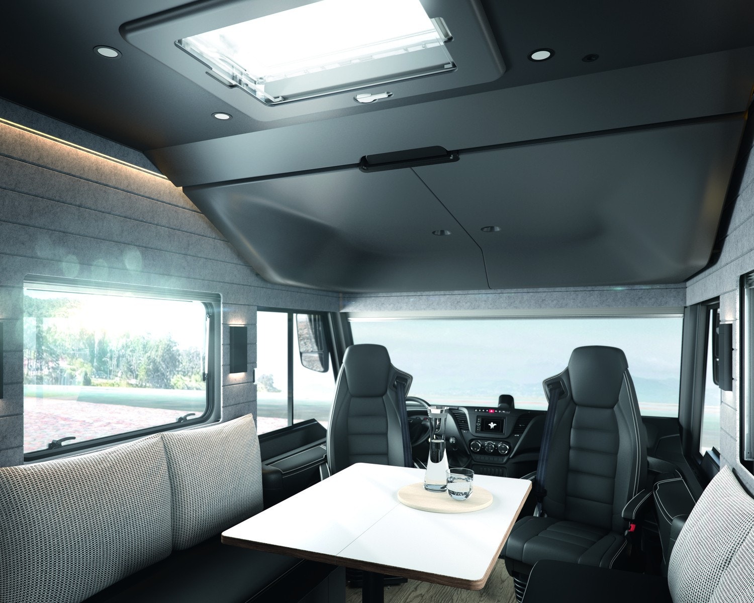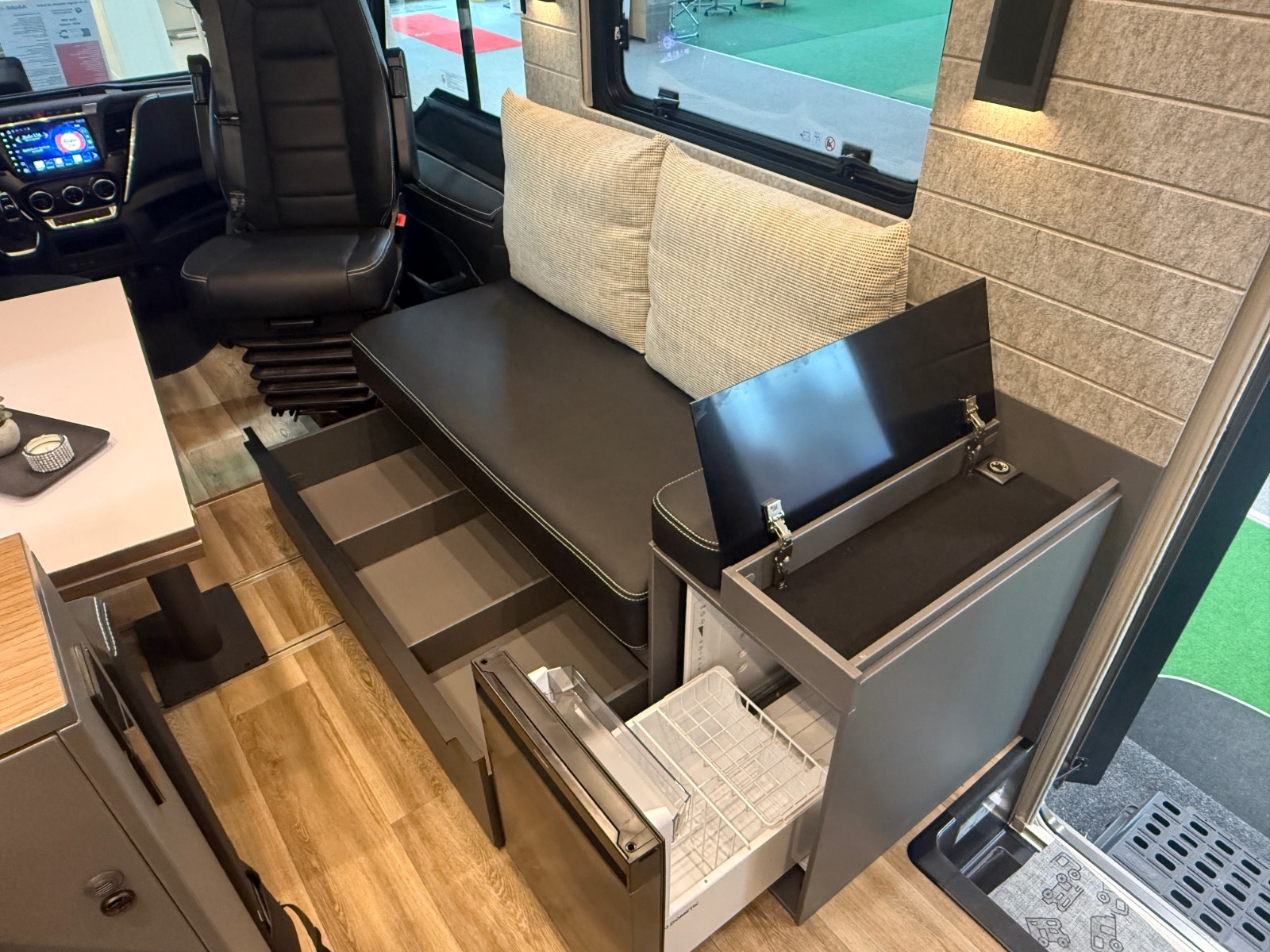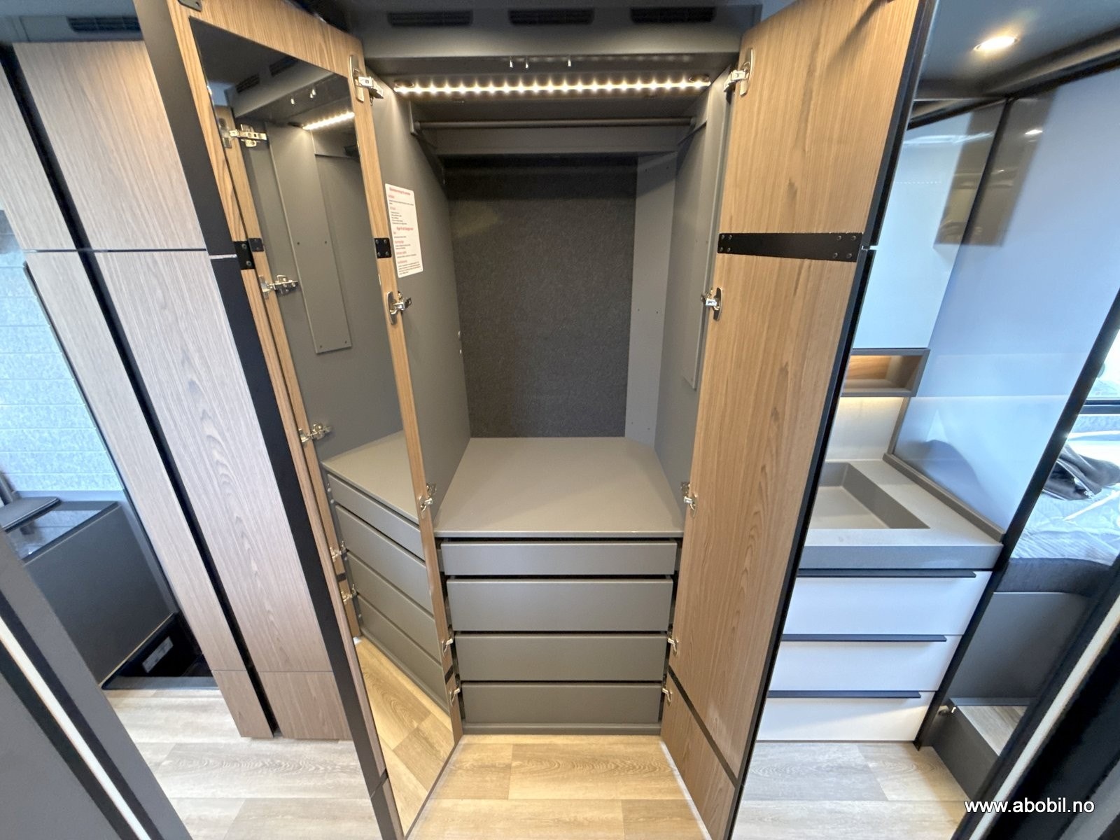 Innvendig møtes du av et gjennomført premiuminteriør med akustisk filtmateriale på vegger for bedre lydnivå. Oppgradert ambient lighting (stemningslys) som gir en lun og hjemmekoselig stemning. Bobilen har flere praktiske løsninger for oppbevaring. ALDE vannbåren varme og gulvvarme – også i førerhuset – gir en behagelig temperatur året rundt. Kjøkkenet er utstyrt med solide mineralplater og byr på fasiliteter som oppvaskmaskin, mikrobølgeovn, stekeovn med grillfunksjon, kaffekapsel maskin og to kjøleskap, noe som gjør langturer like komfortable som hjemme. Badet har romslig dusj og fast keramisk toalett med stor tank. Her får du flere gjennomtenkte løsninger for maksimal komfort.