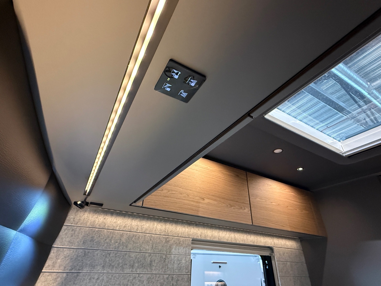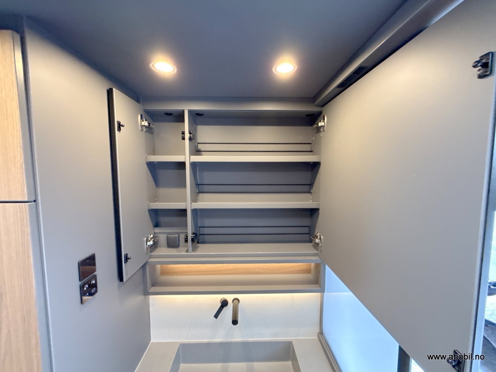 Flere 230v uttak fordelt rundt i bobilen. 12v og USB/USB-C.