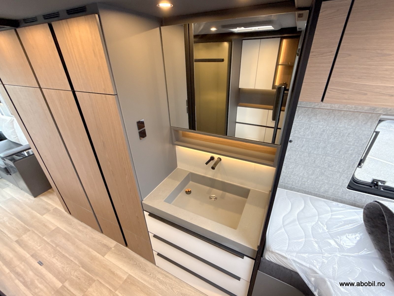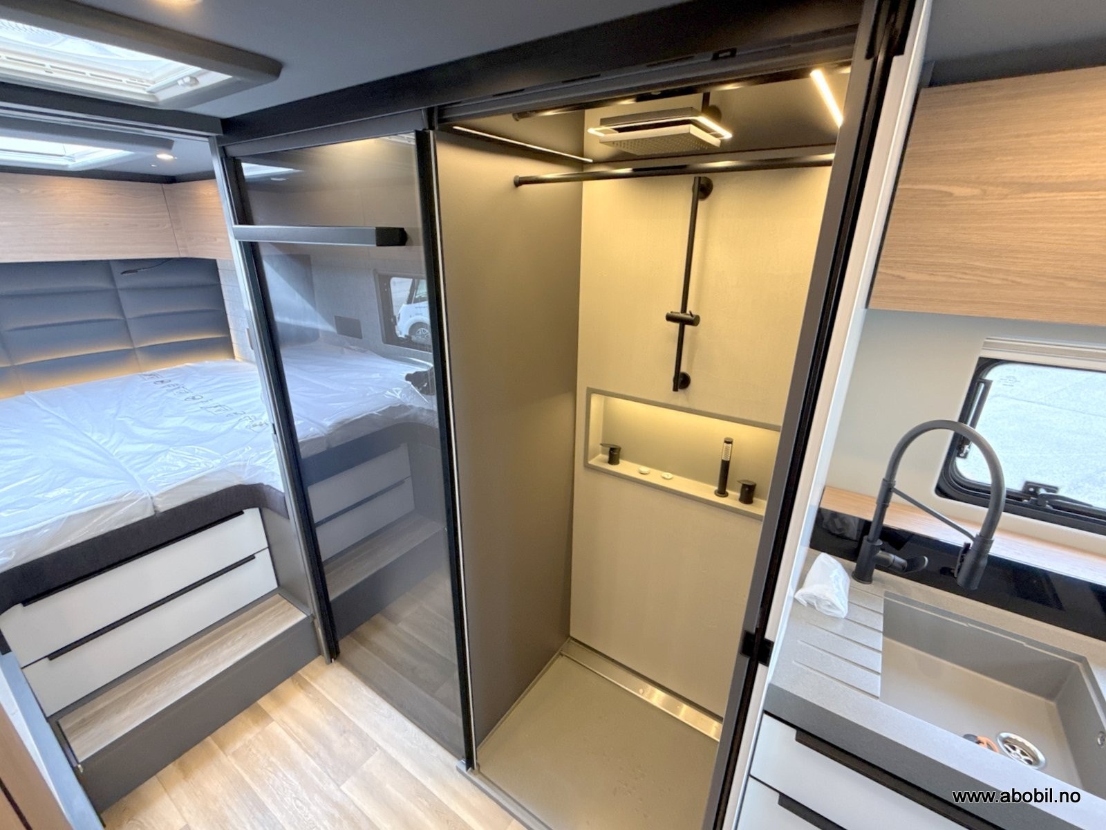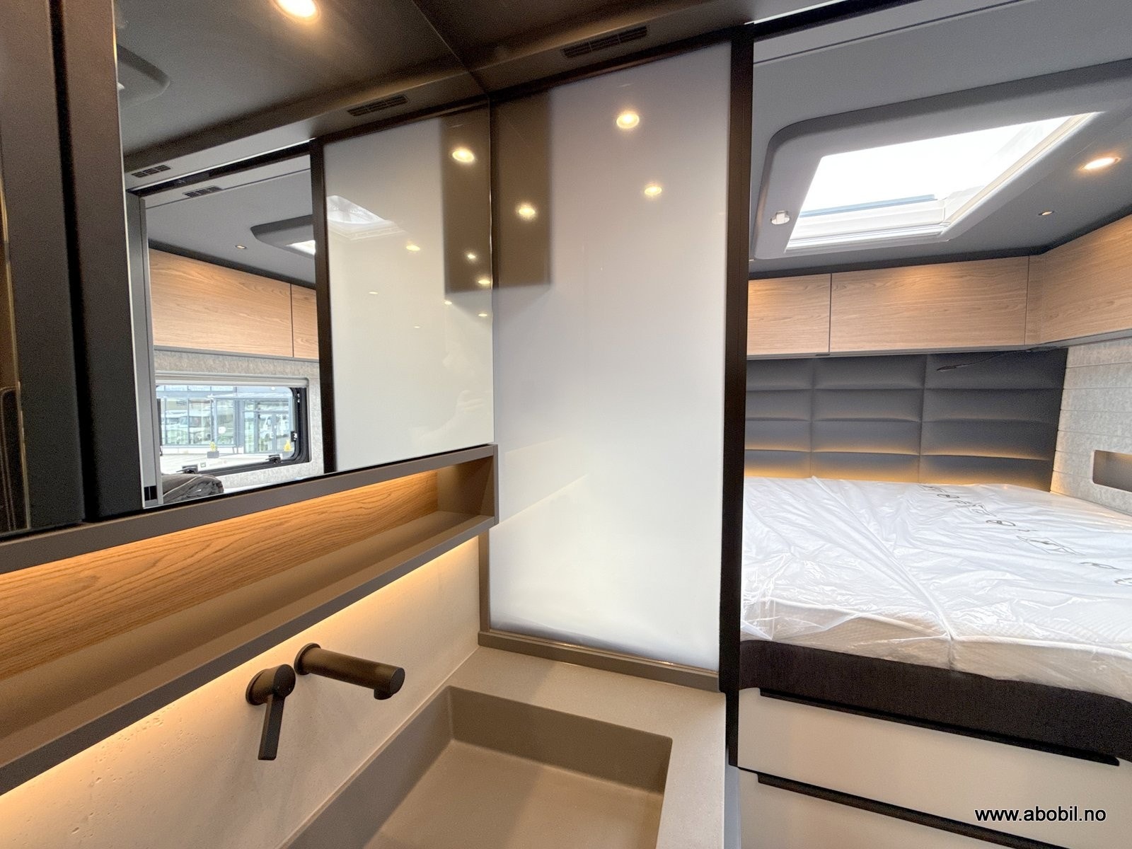 − Elektrisk mørk blendingsglassfelt mellom servant og soveplass