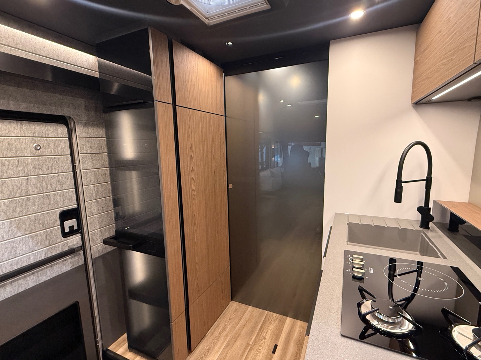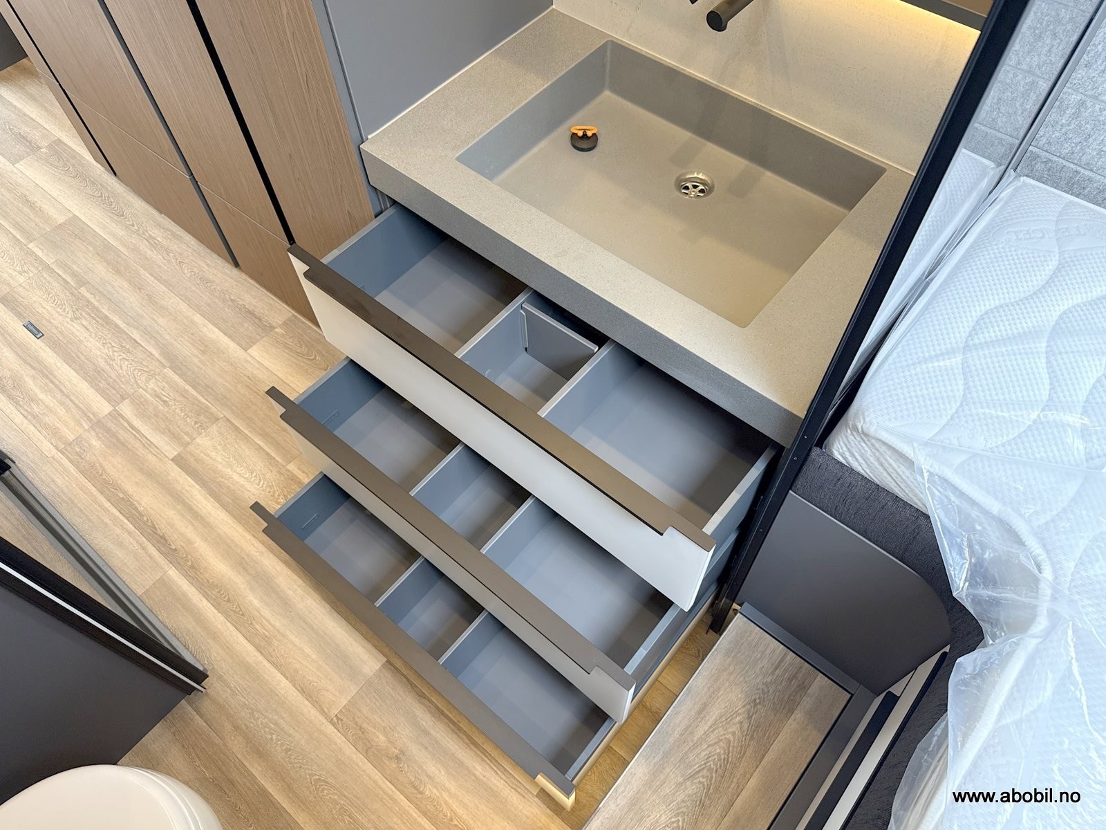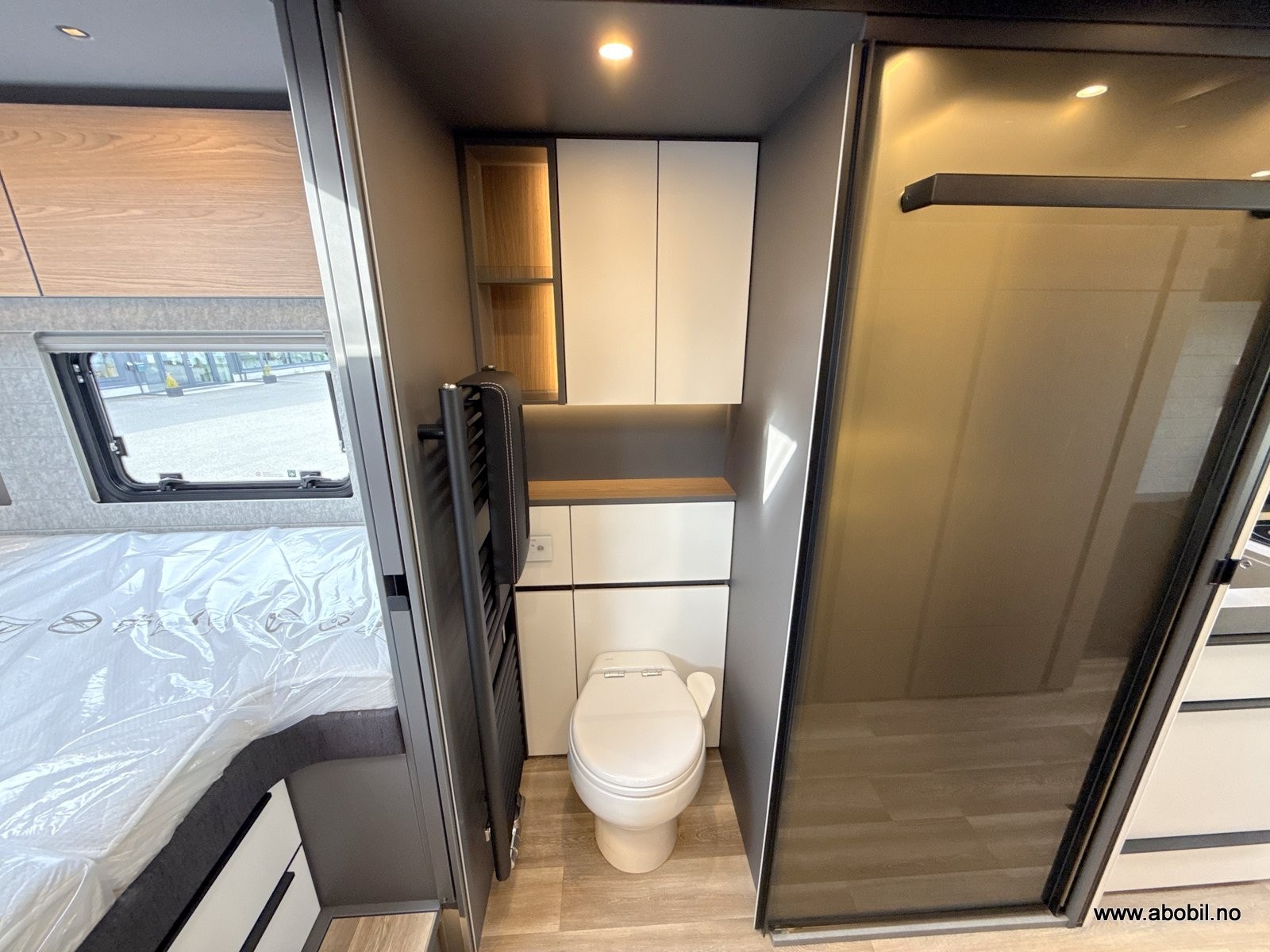 − Elektrisk mørk blendingsglassfelt mellom servant og soveplass