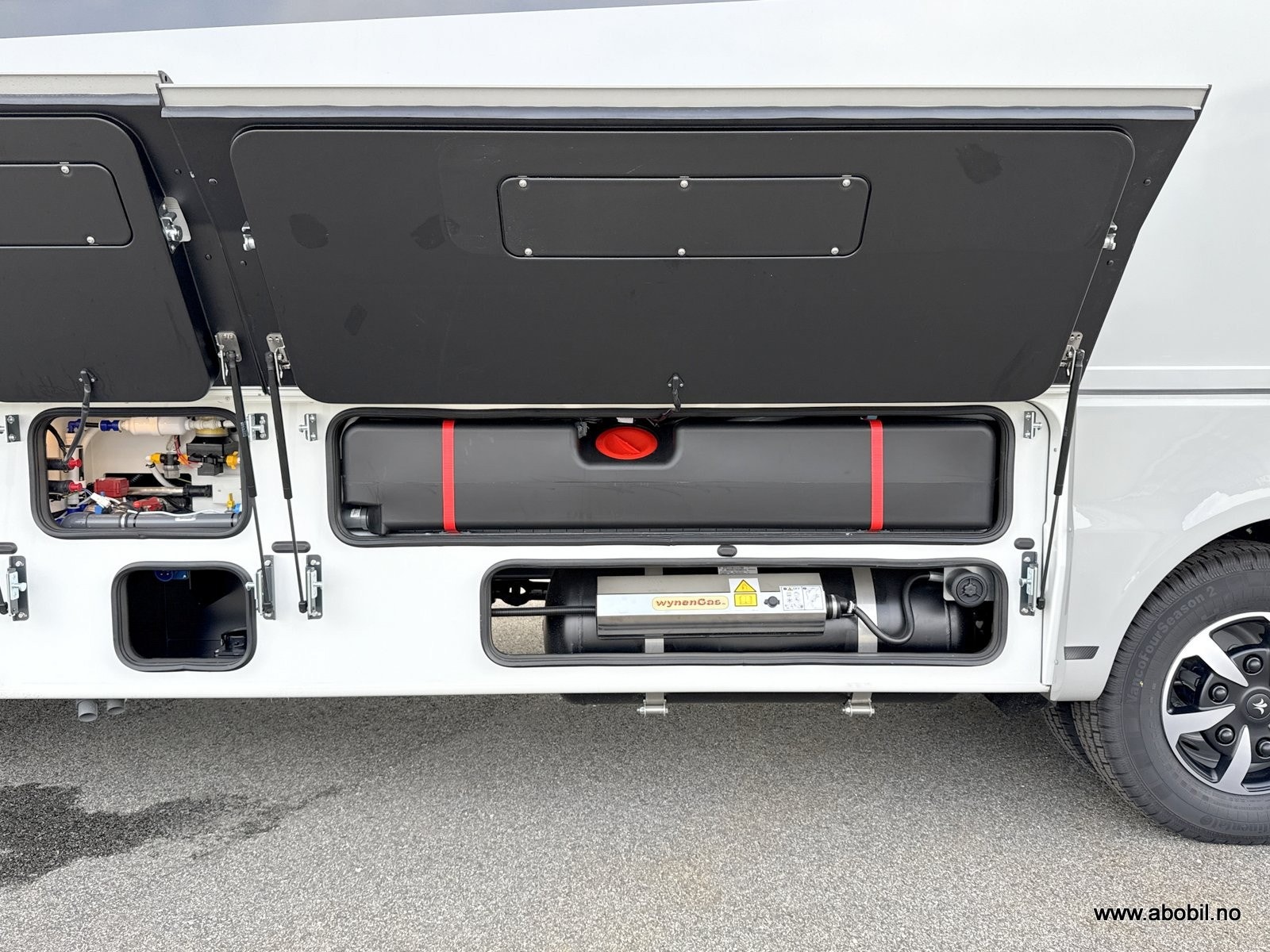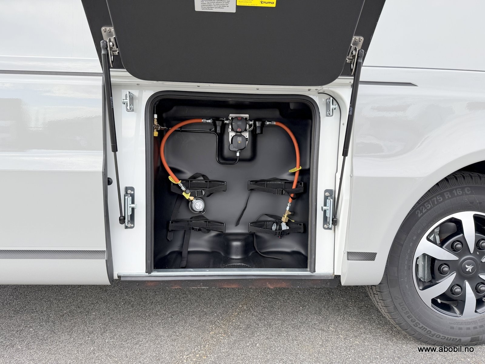 • Gasstank med gassfjernbryter, krasjsensor, nivåmåler og gassfilter, 120 l