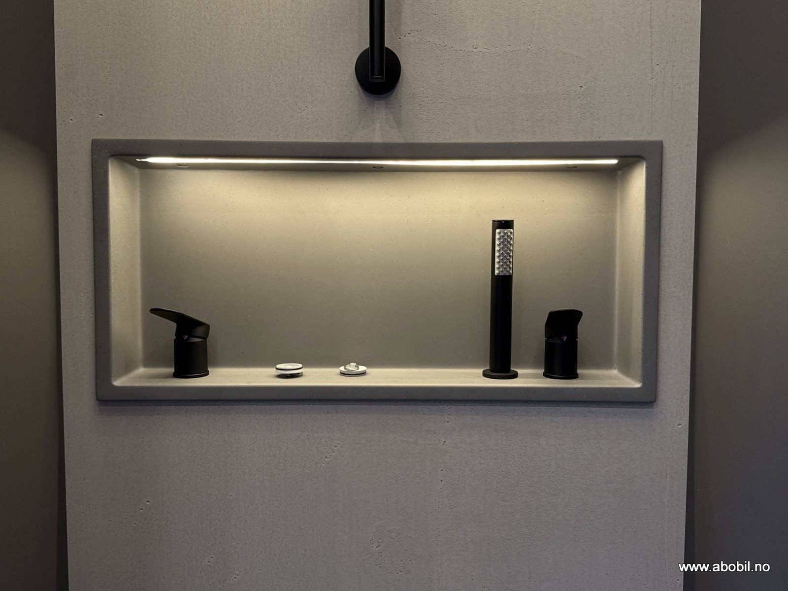 Opplyst regndusj med separat hånddusj.